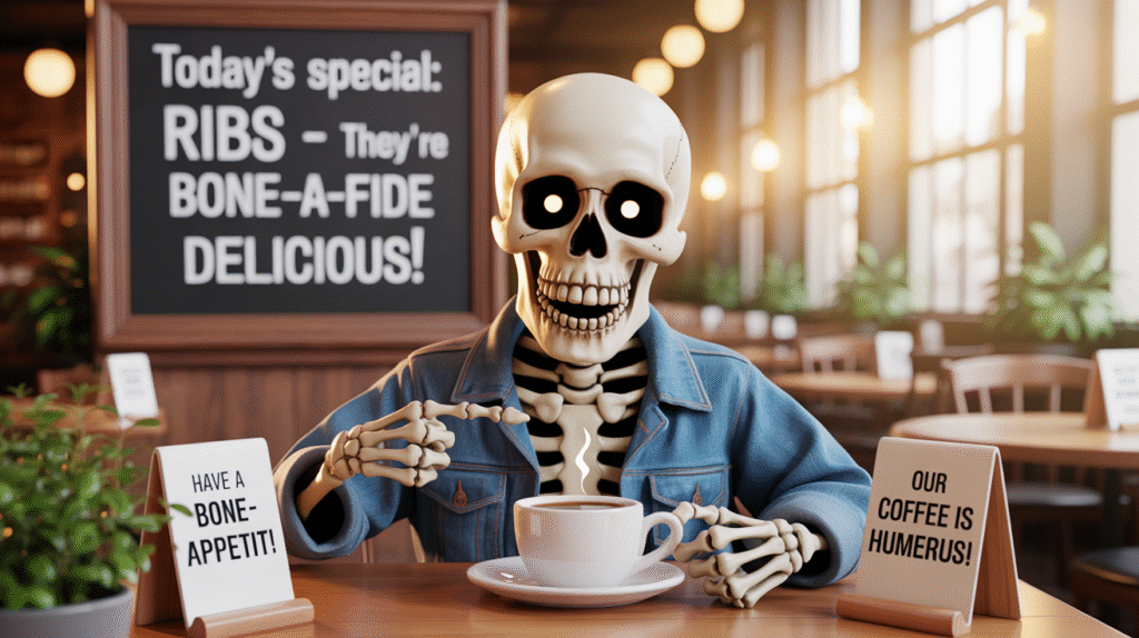 One Liner Bone tastic Pun collection brings endless laughter to everyone. These bone pun jokes never disappoint. They work perfectly for any occasion you can imagine. A good bone pun transforms ordinary moments into memorable ones. Whether you’re texting friends or posting on social media, bones puns deliver instant smiles. The beauty of a bone pun lies in its simplicity. You don’t need complex setups or long explanations. Just drop a bone pun and watch people react. These funny bone jokes bridge age gaps effortlessly. Kids love them and adults can’t resist them either.