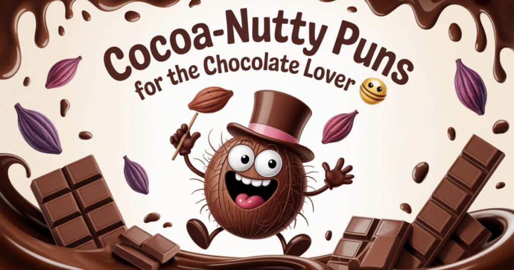 These Chocolate Puns and Jokes That Will Have You Cocoa-nuts bring sweetness to life. Chocolate puns make every moment more enjoyable. You’ve discovered chocolate love puns for romantic occasions. Each clever chocolate pun adds humor to conversations. The chocolate puns one liners work perfectly for quick laughs. These cocoa jokes brighten anyone’s mood instantly. Chocolate puns never go out of style.