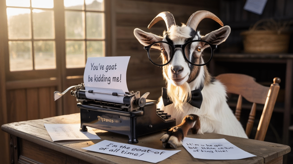 Funny One Liner Goat Puns deliver endless entertainment for everyone. These jokes prove that goat pun humor never grows stale. You’ve discovered countless ways to use goat pun wordplay daily. Share these goat pun gems with friends and family members. The versatility of goat pun comedy makes it universally appealing. Each goat pun category offers unique laughs for different occasions. Kids adore simple goat pun jokes during playtime activities. Adults appreciate clever goat pun references in casual conversations.
