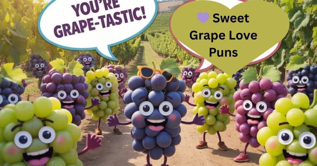 Love and grape puns create the sweetest combinations imaginable. Romance blooms beautifully when you add fruity humor naturally. These adorable grape puns express affection in the most charming ways possible. Couples everywhere will treasure these heartfelt and funny messages.
