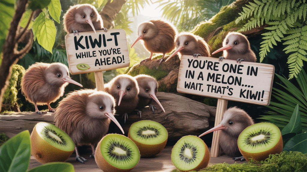 Kiwi puns bring instant smiles to any conversation. These clever wordplays celebrate both the fuzzy fruit and New Zealand’s iconic flightless bird. You’ll find kiwi puns everywhere, from social media posts to family gatherings. They work because kiwis are naturally funny. The fruit looks quirky with its brown fuzzy exterior. The bird waddles adorably with its long beak. People love sharing kiwi puns at parties and online. They’re perfect for breaking the ice.