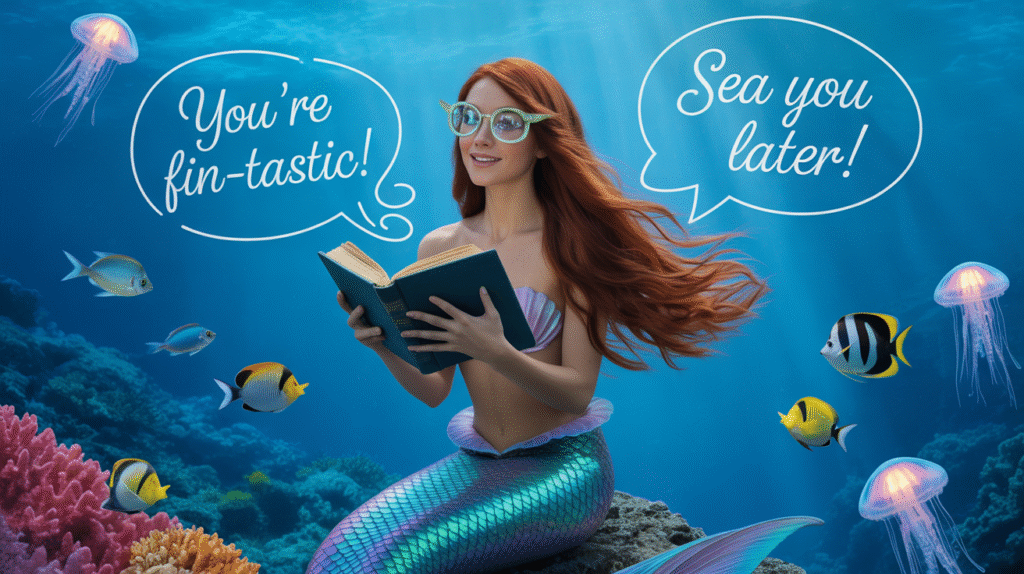 Mermaid puns bring endless joy to ocean lovers everywhere. These clever jokes combine sea life with witty wordplay. You’ll find mermaid puns perfect for any occasion today. They work wonderfully for social media posts and captions. Mermaid puns Kids giggle uncontrollably hearing funny mermaid puns at school. Adults share mermaid puns during beach trips and vacations. The best mermaid puns create smiles on everyone’s faces instantly.