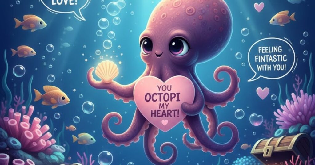 Romantic octopus pun collections express deep affection through ocean humor. These octopus love puns create perfect messages for sweethearts. Send cute octopus sayings to show your feelings.